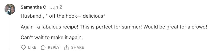 Paid subscribers receive an exclusive recipe drop every single Saturday morning, and can access all past recipes on the website.