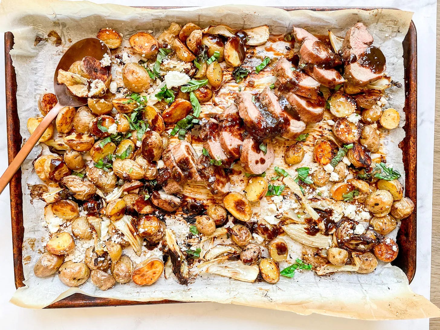 DINNER DAY #5: sheet-pan balsamic pork tenderloin with fennel and potatoes