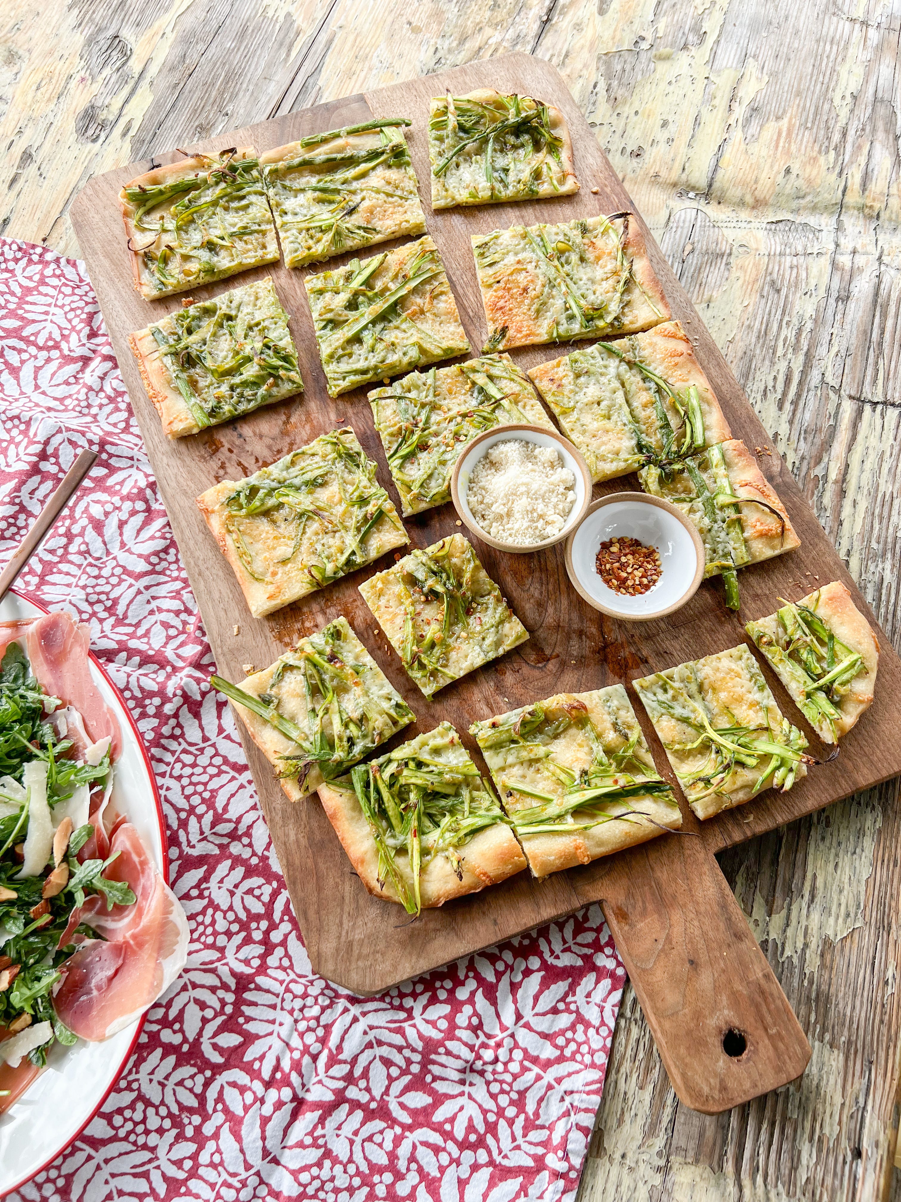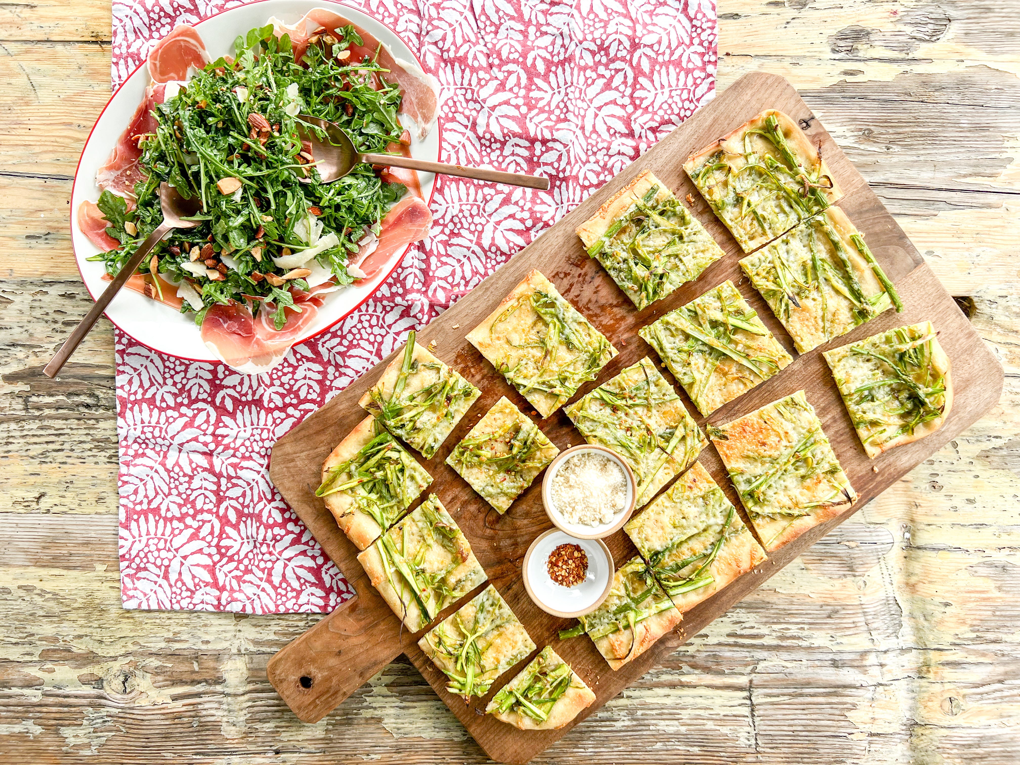 asparagus grandma pizza + prosciutto salad