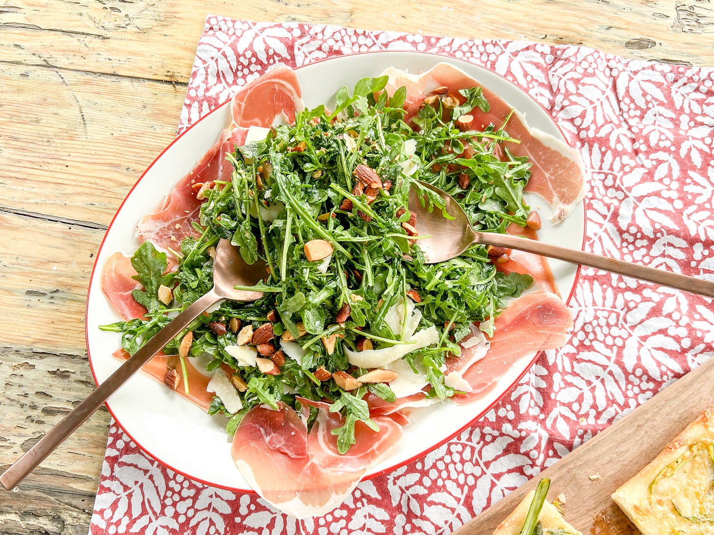 asparagus (or not!) grandma pizza + prosciutto salad