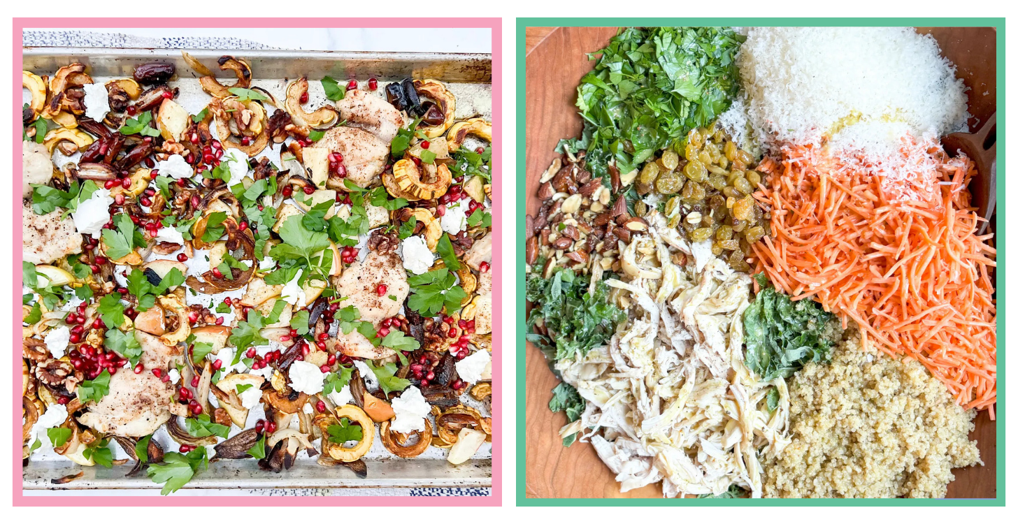 This sheet-pan chicken and squash dinner has similar notes as today’s, but uses delicata squash and chicken thighs, and skips the salad part. If you’re not yet ready to embrace fall flavors, make my lemon-parm chicken, quinoa, & kale salad good-all-week instead!