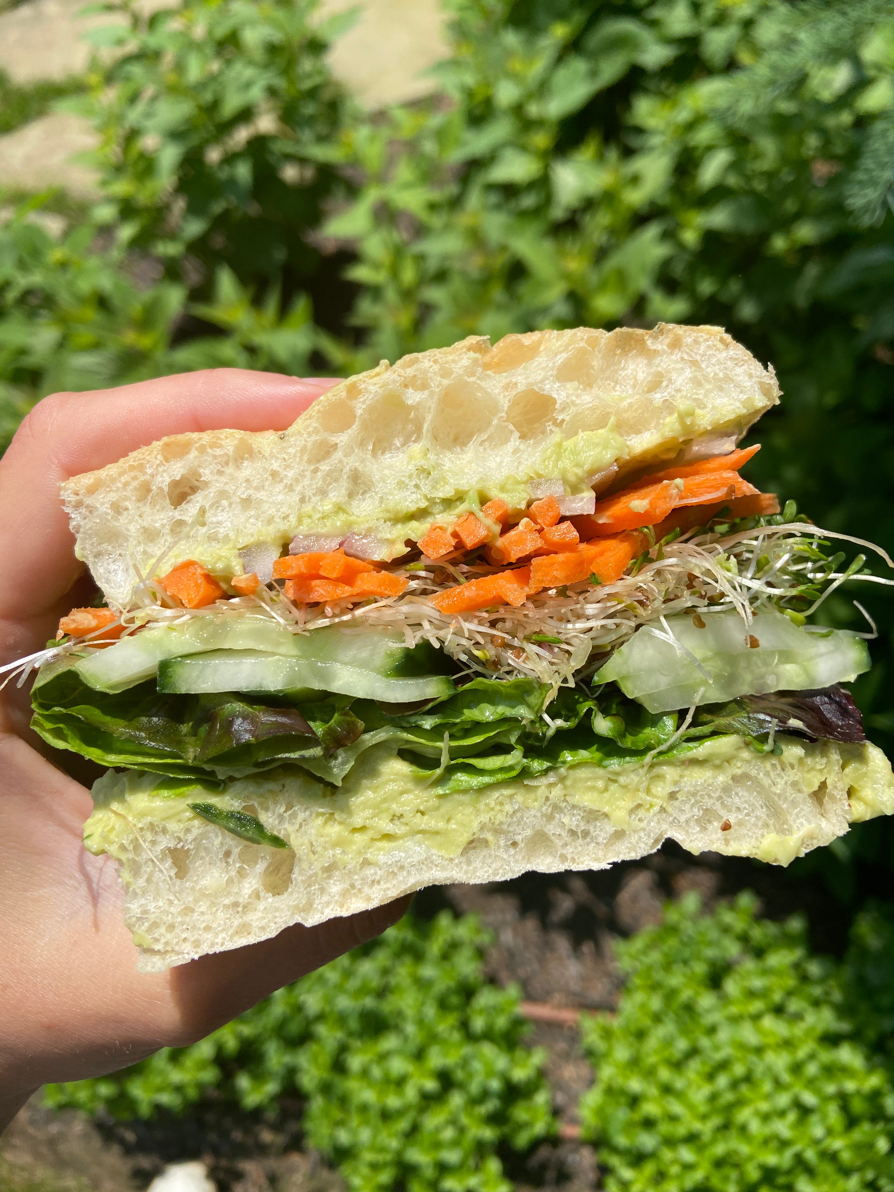 My kids won’t eat vegetables 🙄: The most veggie-tasting, veggie-looking toppings here are going to be the sprouts and lettuce so, if needed, leave those off of their sandwiches. The carrots and cucumbers might pass! If not, know that the white bean-avocado spread is packed with protein and other nutrients so even if they just eat the spread-covered bread they’re still getting a great meal!