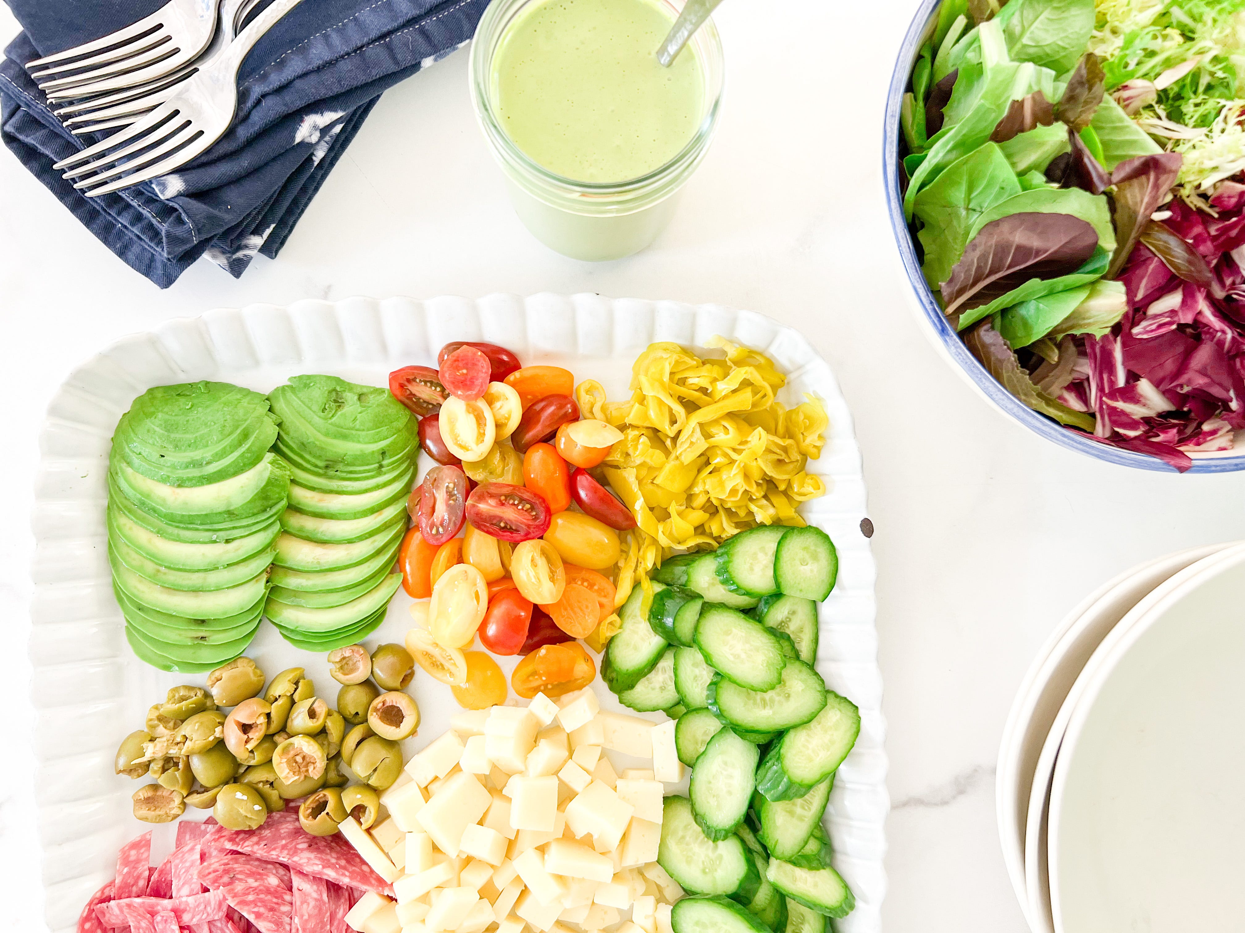 There’s a time and a place for a fully assembled, tossed salad. And there’s a time and a place for a salad platter, where eaters pick and choose and assemble their own meal.