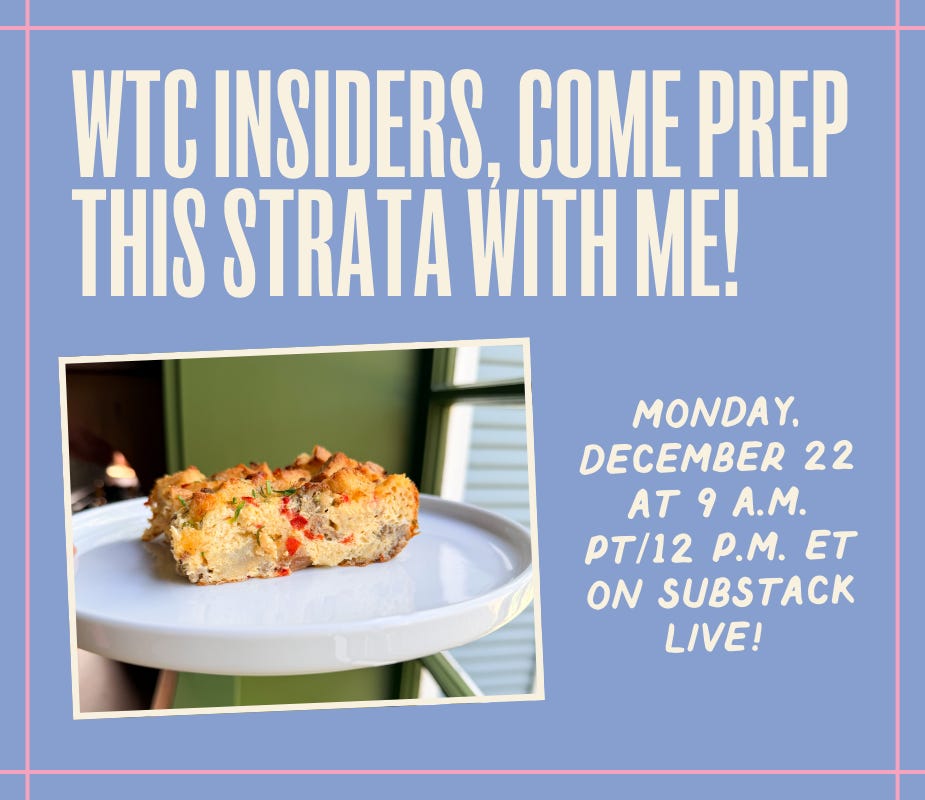 Our first Insiders cooking demo/hangout! Join me to prep Christmas breakfast together on Monday, December 22, at 9 a.m. PT/12 p.m. ET. Bring your kids, mine will definitely be around. Whether you need a Christmas morning breakfast or you just want to have a cozy, delicious breakfast or brunch one day early next week, it’ll feel so good to have this ready to go in the fridge.