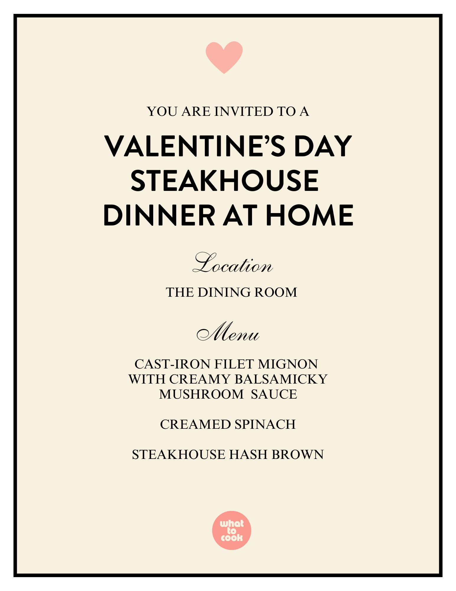 Also, we’ve written you a grocery list for this meal! Here it is along with a printer version of the recipes, game plan, notes, and subs. Happy Valentine’s Day! 💌