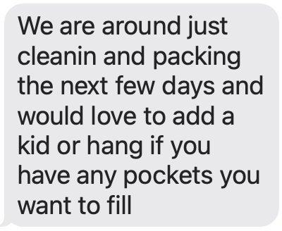 So many texts like the one above when friends know that one of us is traveling and the other is home alone with the kids.