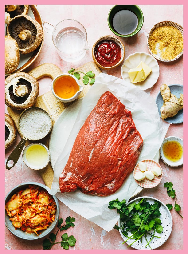 I’ve re-worked it to suit What To Cook standards, but today’s recipe is based off of the “Korean Sliced Beef,” which didn’t have a photo in the book*, so even I forget about it, which is a shame because it is so, so good. I vividly remember testing it during a dinner party at a friend’s house in Palo Alto, while George was in business school at Stanford and I was developing the recipes for Just Married. When I sent all our friends my feedback form the morning after the dinner party (yes, I seriously had a Google Doc feedback form that I would send friends after testing recipes on them!) the consensus was: “no notes, 10/10.” So it’s time we give this one the spotlight it deserves.