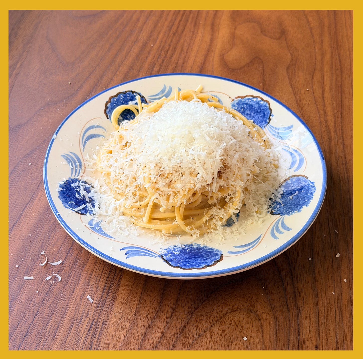 While the noodles are cooling, use a microplane (or the smallest hole of a box grater) to finely grate 3 ounces (2 to 3 cups) of Pecorino Romano cheese. A little bit at a time, add the grated cheese, using tongs to vigorously mix it into the pasta. Add the next tiny bit only once the first bit is incorporated. Stir VERY vigorously with your tongs as you work.
