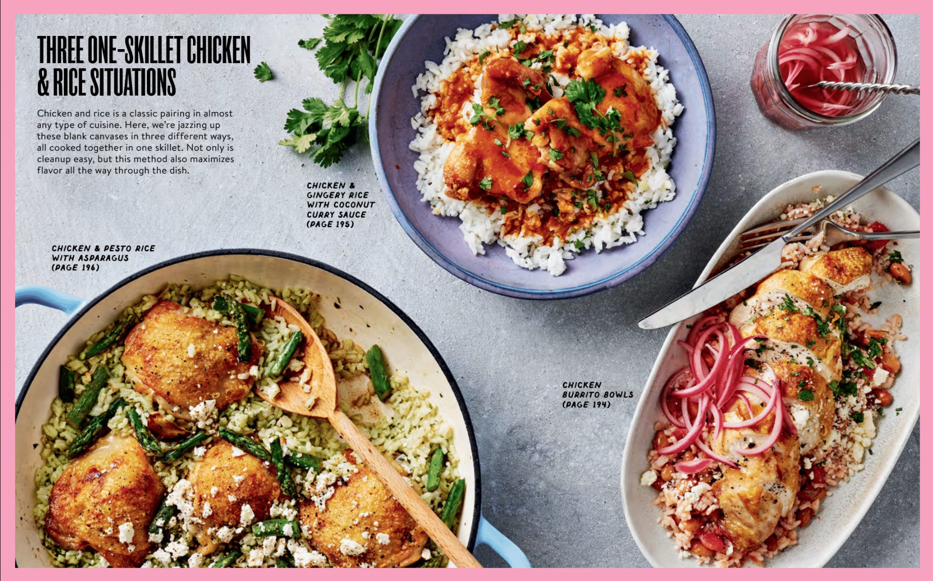 By the way… there are actually three one-skillet chicken and rice recipes in the book!