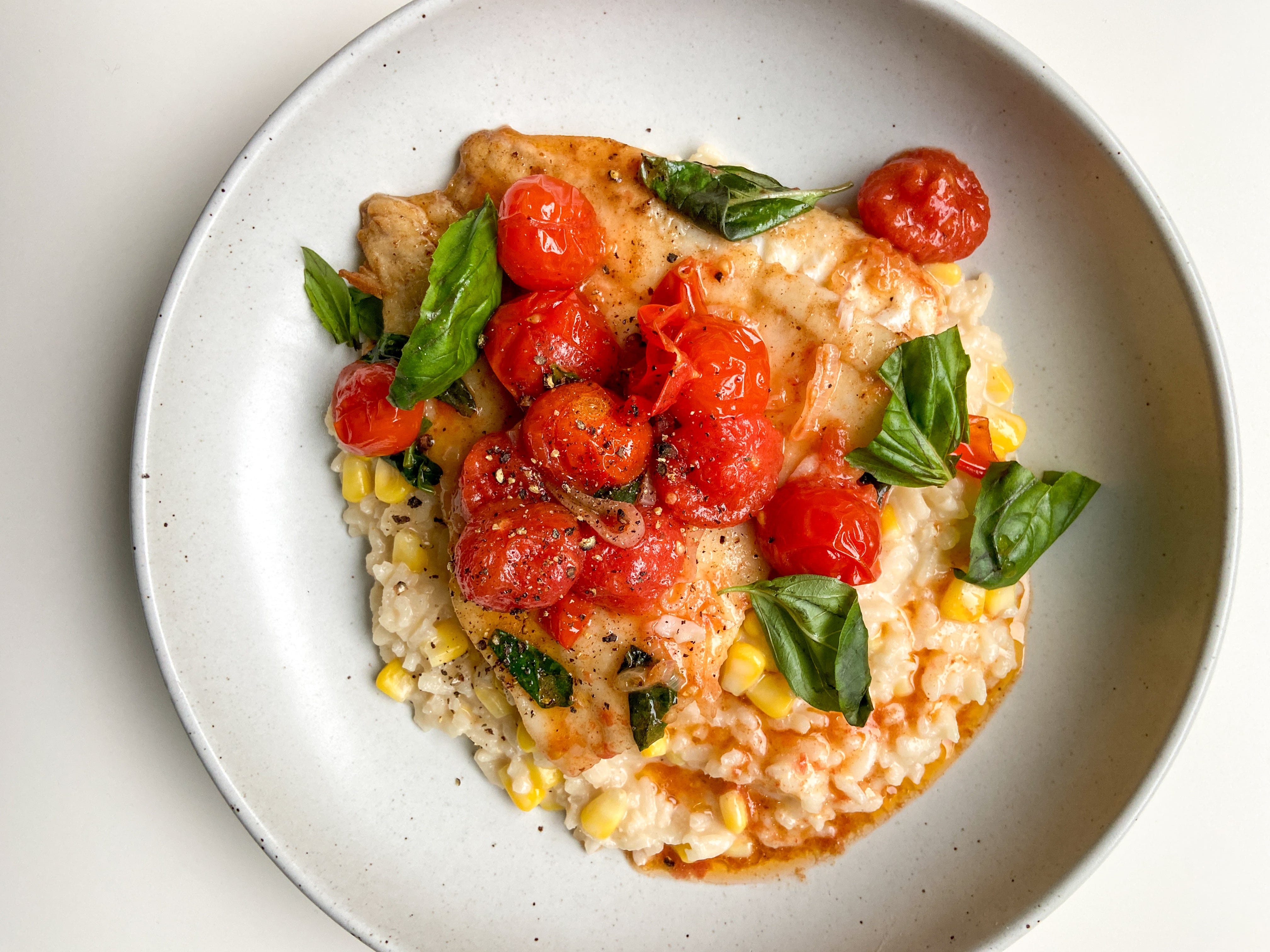 pan-fried dover sole + corn risotto