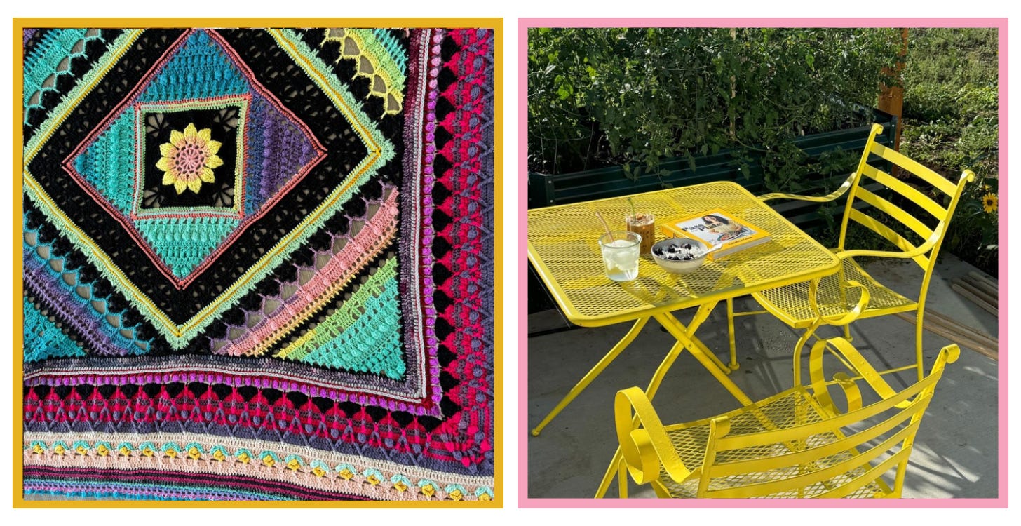 I also thrifted this table and chairs (separately) and painted them yellow, which brings so much color and life to my garden.