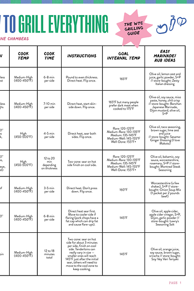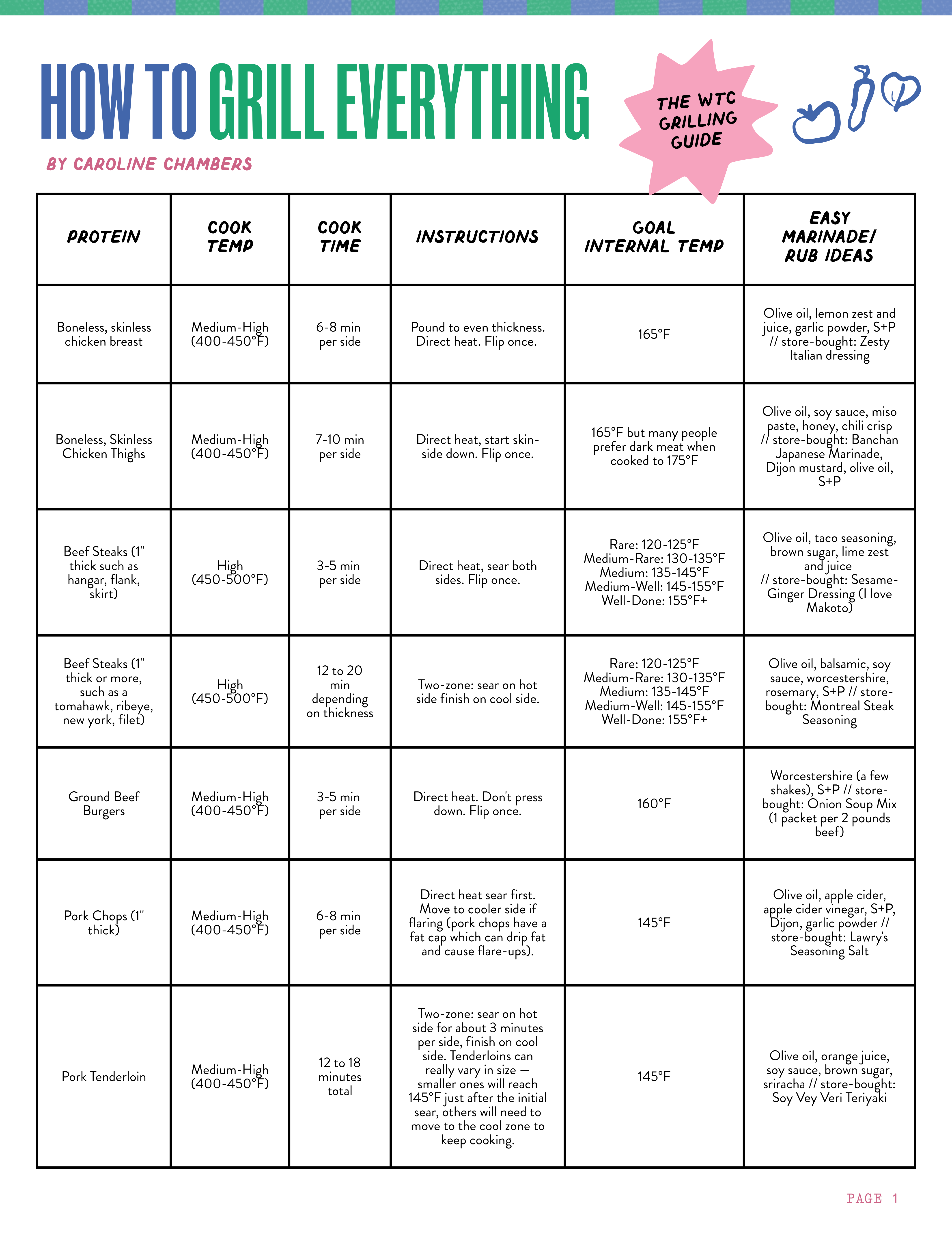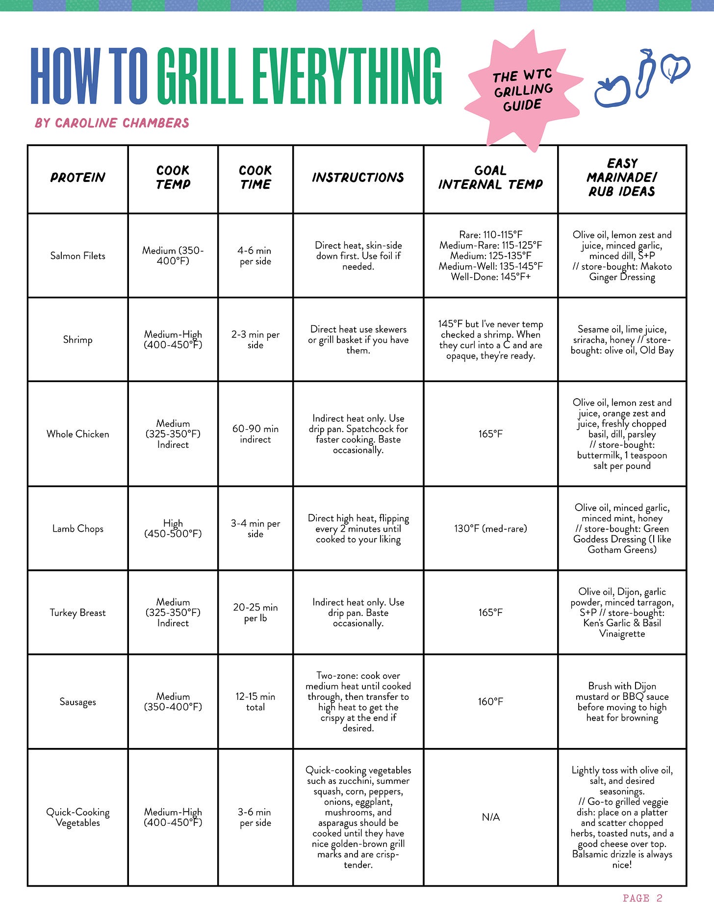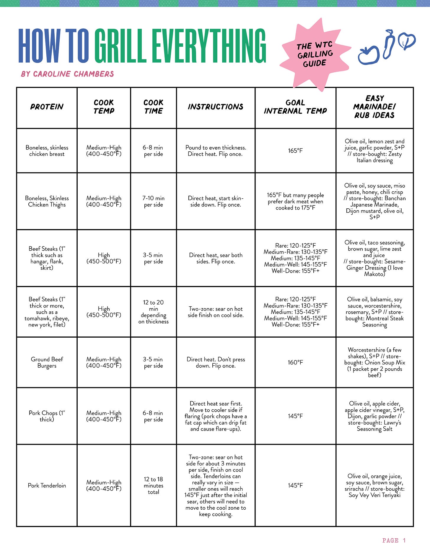 Here’s everything you need to know about grilling in one place, because frantically googling “how long do I grill chicken?” while your food is already on the fire is not the chill grilling vibe we're going for this summer.