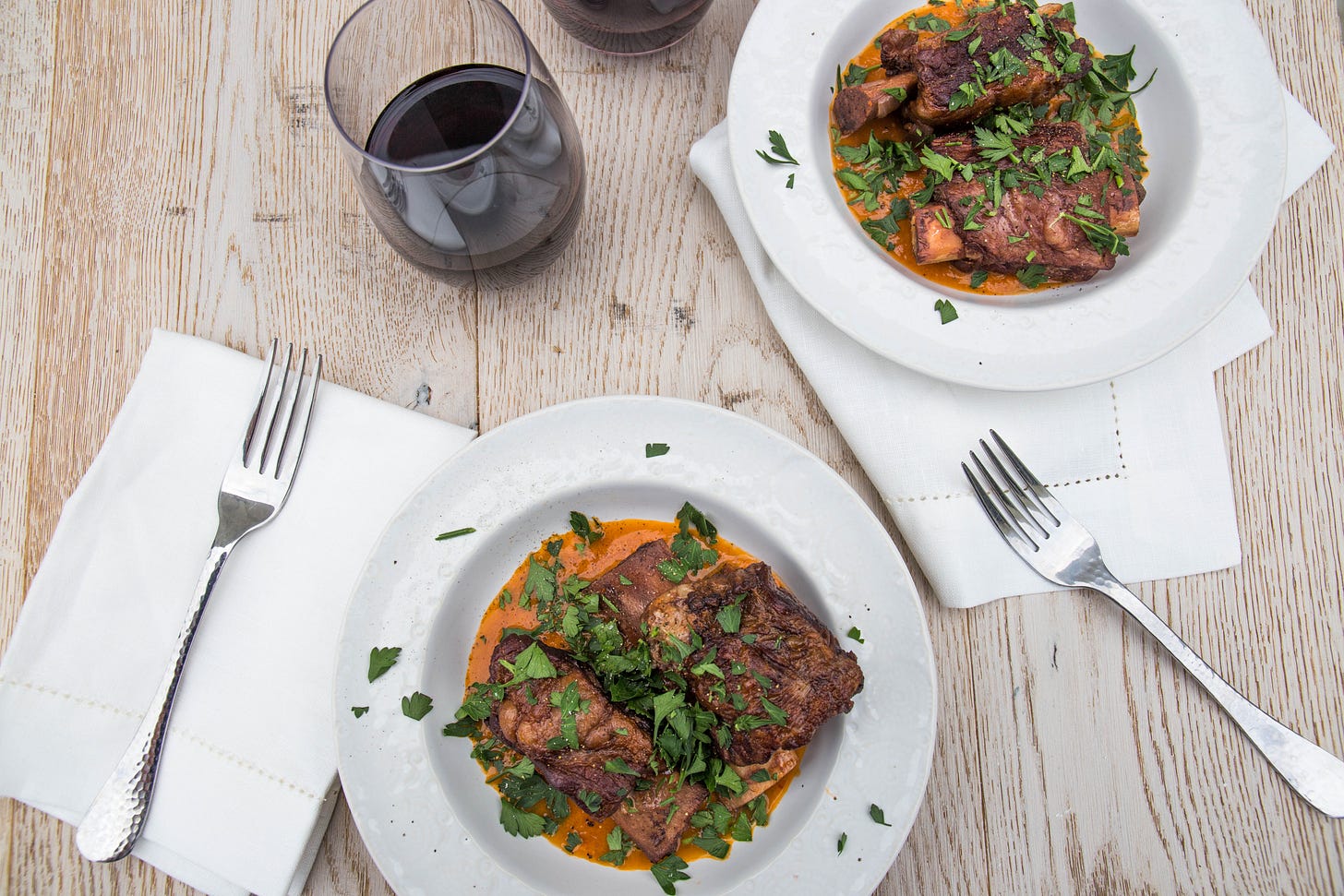 Short ribs and grits — the recipe from last Sunday! You can make the short ribs up to 3 days in advance and just refrigerate them right in the pot. Warm them in a 350°F oven with the lid on for 30 minutes before serving. You can go ahead and blend the sauce ahead of time and add the ribs back to the blended sauce. You can also make your grits ahead of time — just reheat them with a splash of water or milk when you’re ready to serve. This is truly the easiest meal that looks so fahn-cy!