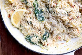 creamy chicken, leek, and sun-dried tomato orzotto
