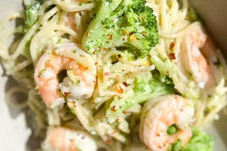 30-minute broccoli shrimp alfredo-ish